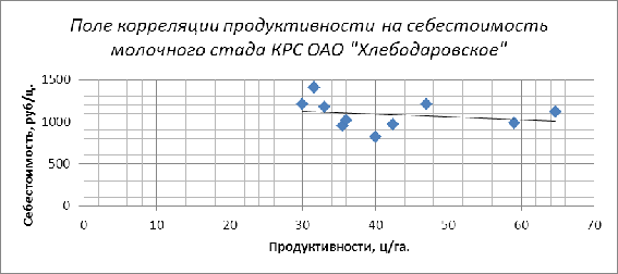линейной форме связи между продуктивностью и себестоимостью молочного стада в