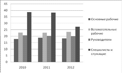 основная категория на предприятии - специалисты и служащие, удельный вес