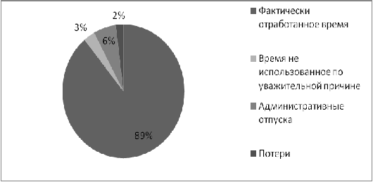 случаи, отпуска) - 3 %. Для сокращения потерь рабочего времени на предприятии