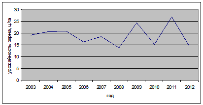 зерна составляла 19,1 ц/га, то, наконец, 2012 года урожайность зерна понизилась