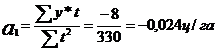 урожайность зерновых ежегодно уменьшалась на 0,024ц/га или на 3%.