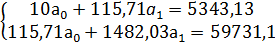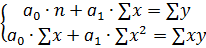 методом наименьших квадратов, то есть решим следующую систему уравнений