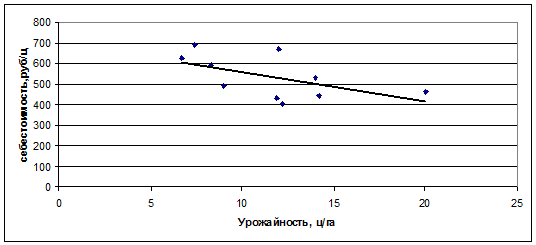 регрессионный анализ себестоимости и урожайности зерновых культур показал, что