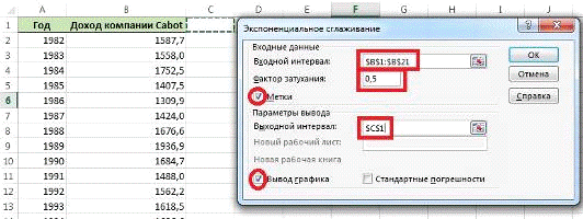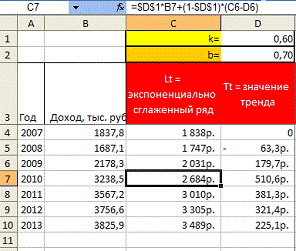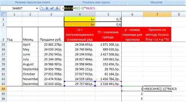 значение экспоненциально сглаженного ряда и тренда - для этого выделяем ссылку