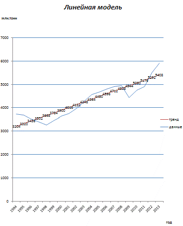 предприятий транспорта с1994-2013 г. г. с изображением тренда (тип