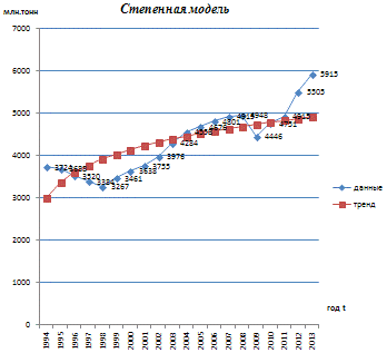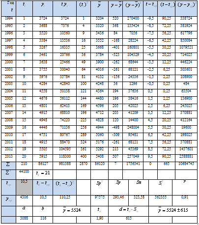рядов динамики, заключается в выявлении основной тенденции развития изучаемого