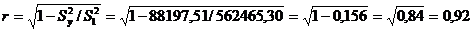 величину стандартной ошибки и коэффициент детерминации - 0,92, а так же