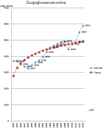 и добавим линию тренда (тип логарифмический) рисунок 5.