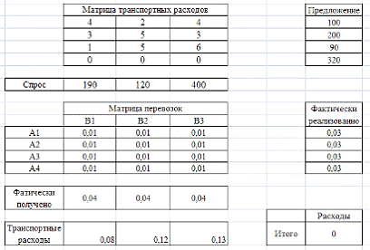 отражающие транспортные расходы по каждому потребителю, т.е. формулы в ячейки