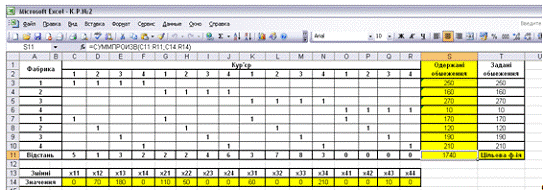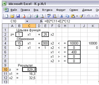 задачі. Розв’язати отриману задачу за допомогою електронних таблиць Microsoft