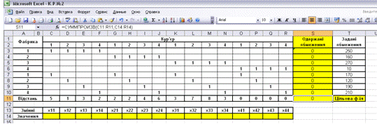 транспортної задачі. Розв’язати за допомогою електронних таблиць Microsoft