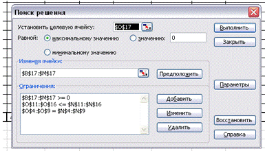 середовищі Excel за допомогою меню СервисÞПоиск решения.