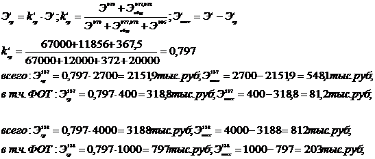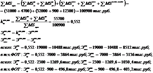 основных общих и общехозяйственных расходов происходит по формулам: