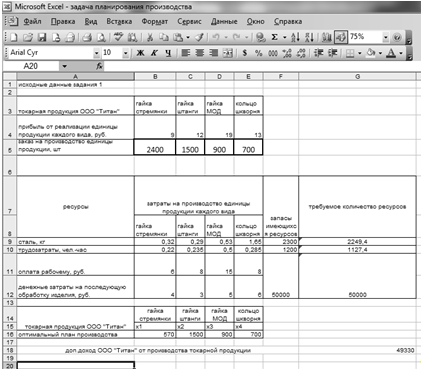 Рис. 5. Результат поиска решения (оптимального