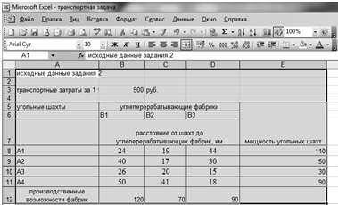 Рис. 1. Ввод исходных данных задания 1