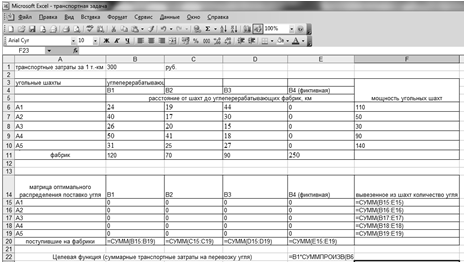 модель представленной задачи линейного программирования ().