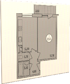 дома. Площадь квартиры - 37м2.