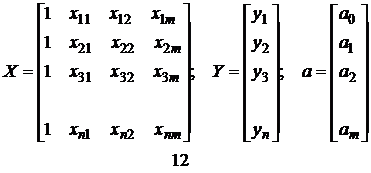 XTX;- вектор исходных данных зависимой переменной;- вектор оценок коэффициентов