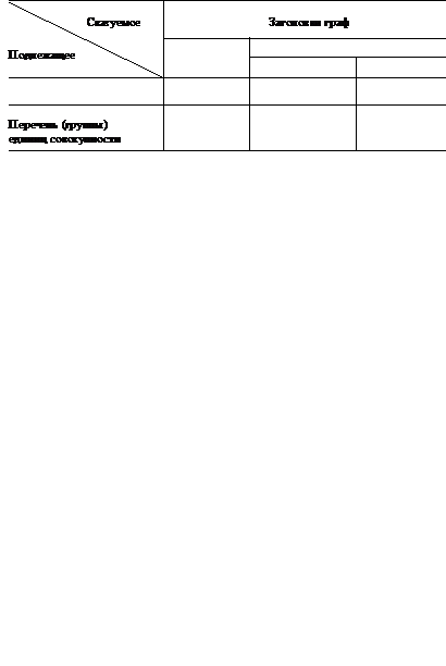 наименования строк таблицы. Сказуемым таблицы являются цифровые данные,