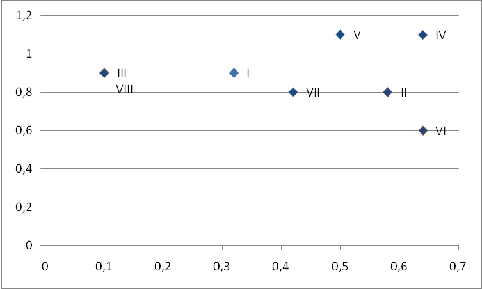 специалистам III, I, V, VII и далеко от специалистов IV, II, VI. Это значит,