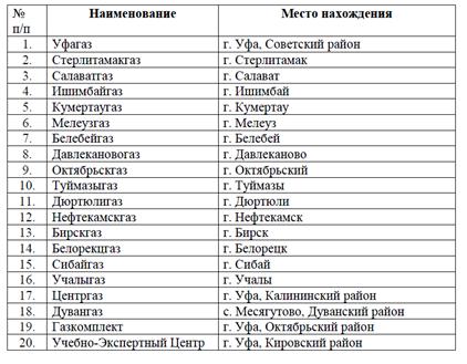 Филиалы ОАО "Газ-Сервис"