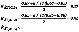 определяется как отношение расчетного коэффициента текущей ликвидности к его