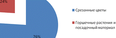 Рис. 1.2.2.1 Доля срезанных и горшочных цветов, в %