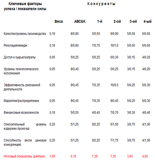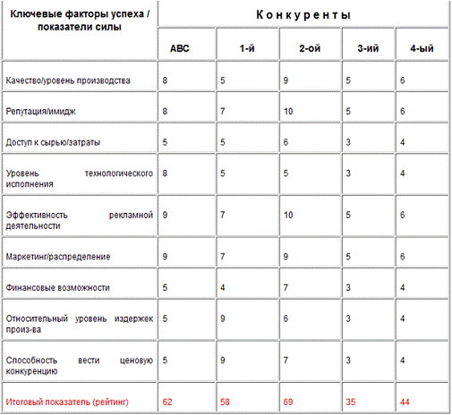 оценка конкурентоспособности конкурентов позволяет определить наиболее слабых