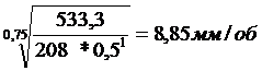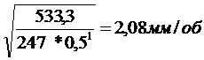 Расчет величины подачи, S=