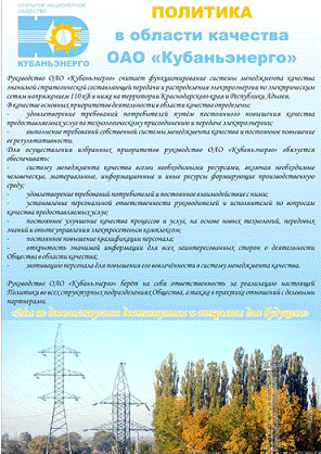об информационной политике ОАО "Кубаньэнерго" (с изменениями на