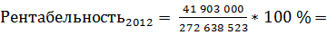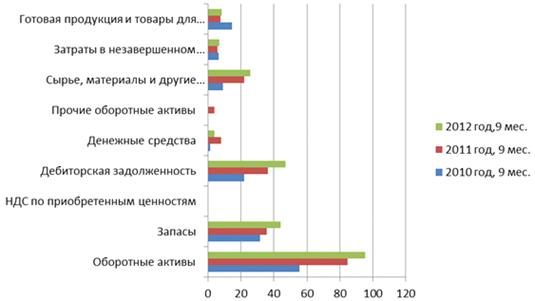 оборотные активы - за 2012 год 41, 15% от общей стоимости. При этом величина