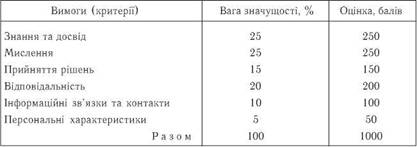 працівників вимогам робочого місця, посаді;