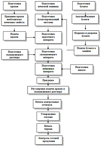 этого ведут подготовку применяемого оборудования, материалов: краски и бумаги,