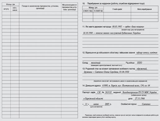 12986, м. Яворів вул. Центральна, 9, кв. 12. Тел. 11-23-45. Паспорт серія КС, №