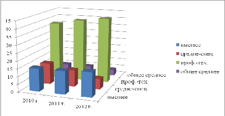 в 2012 г. сократилась на 2 человека. Уровень образования работников организации