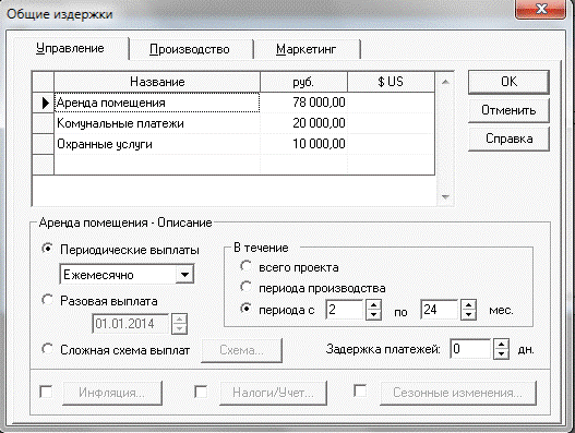 производства на предприятии (в данном проекте - реализация услуг), объемов