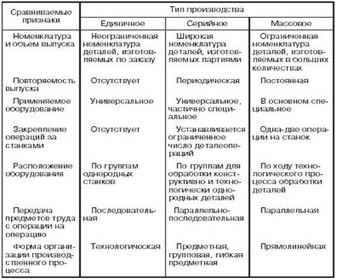 массового производства принимается равным 1. Сравнительная характеристика типов