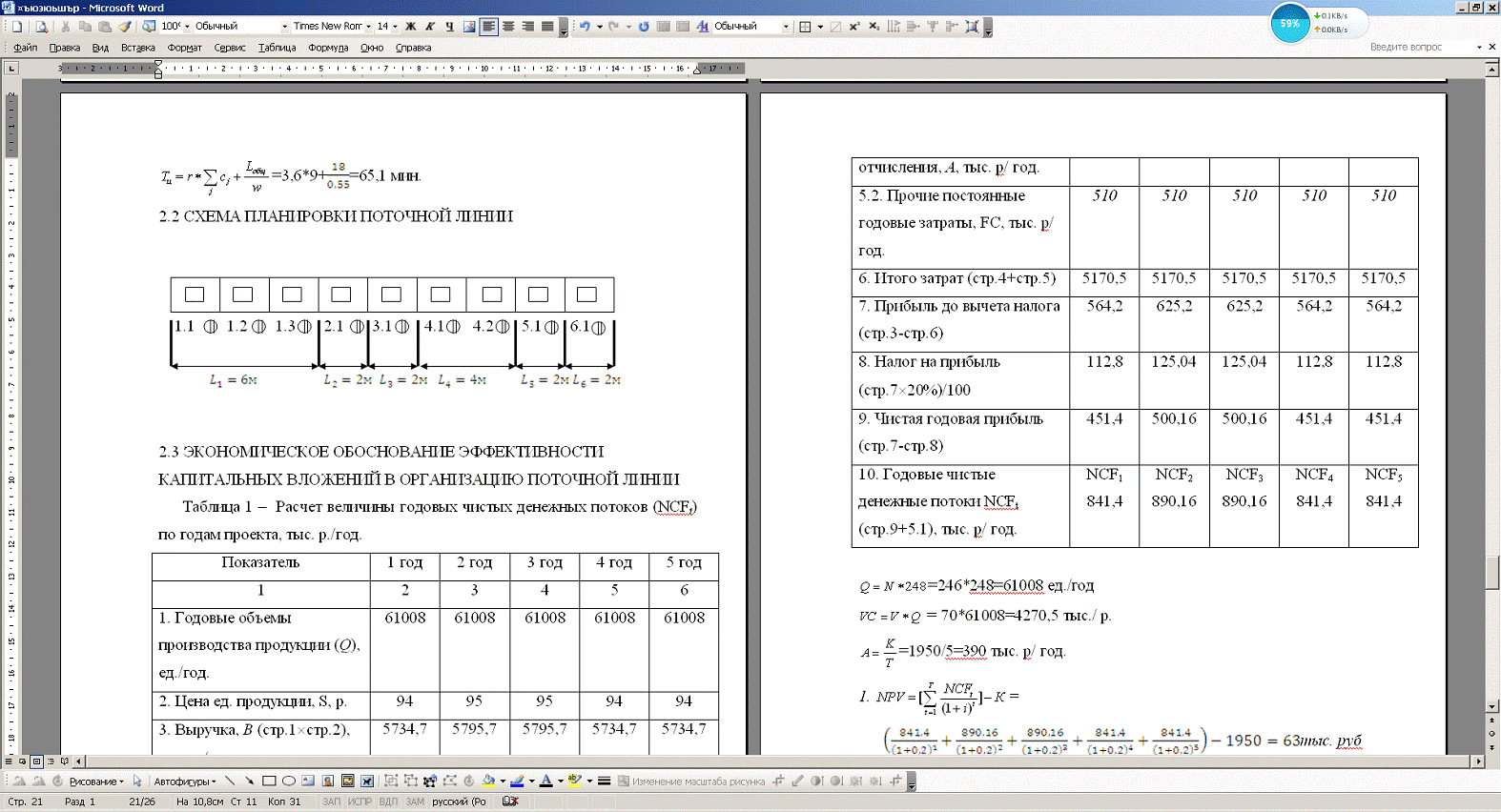 объемы производства поточной линии