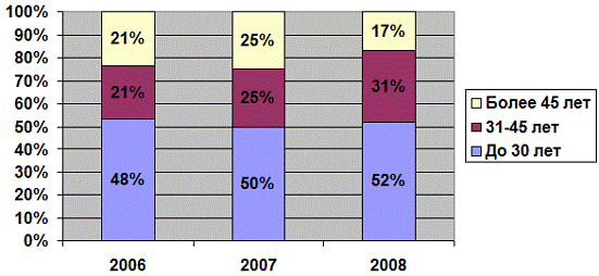 Самой проблемной возрастной группой являются работники в возрасте «до 30 лет»,