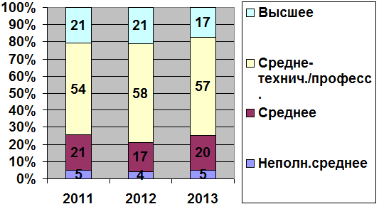 персонала уровень образования. Здесь ситуация выглядит следующим образом: