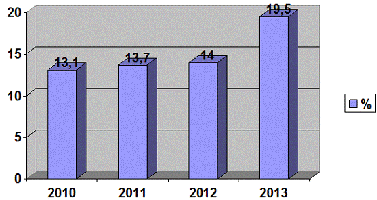 предприятии являются рабочие. Уволенные рабочие в 2013 году составили 63%.