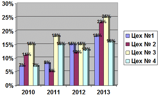 углерода и №5 по ремонту т.о. и цех №13 электроснабжения, составившие по 7 % от