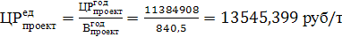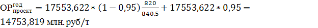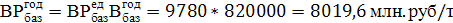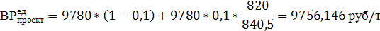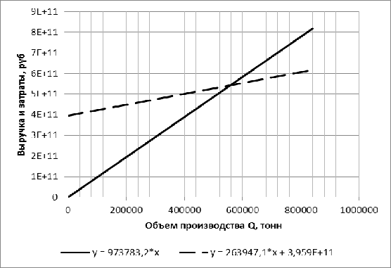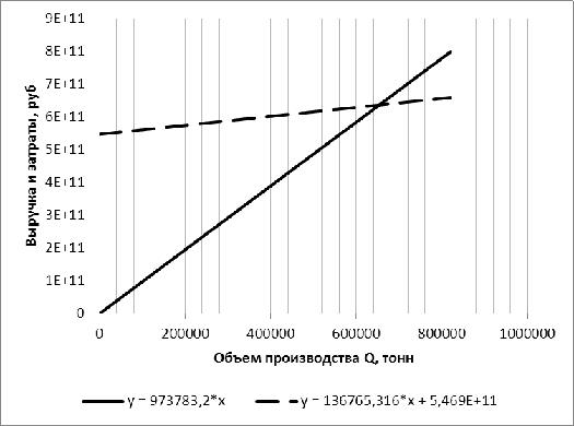 безубыточности лежит левее объема продаж (840500 тонн), а ее величина равна ~