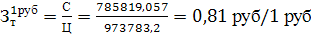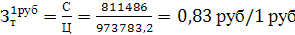 Уровень затрат на 1 рубль товарной продукции: