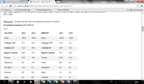положение в экономике Армении. По ней был написан анализ и построен график.
