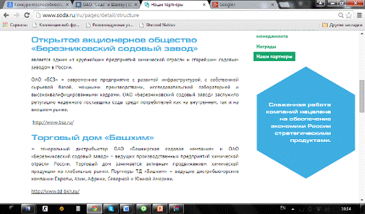 "Сода" и главным конкурентом это ОАО "Лисичанская сода".