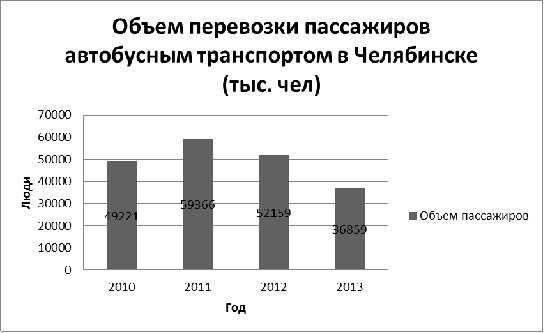 2 - Диаграмма объема пассажирских перевозок автобусным транспортом в г.