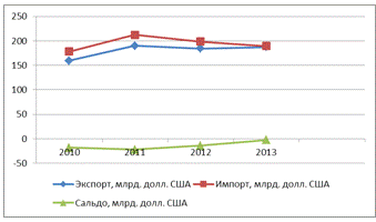 Общая характеристика экспорта импорта по стране за период с 2010 по 2013 года