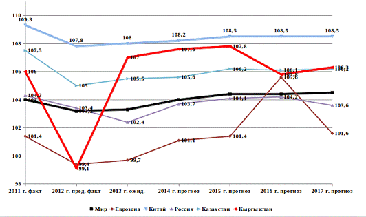 мировой экономики и Кыргызстана за период 2011-2017 годов (%), по оценке МВФ по