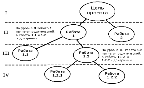 декомпозиции проекта на подпроекты, пакеты работ различного уровня, пакеты детальных